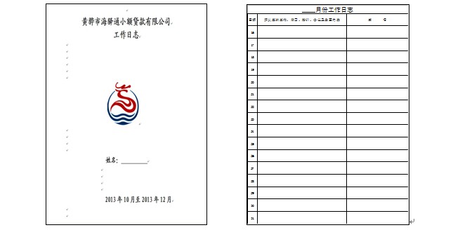 為了更好地推動(dòng)工作,提高工作效率和員工的責(zé)任感,貸款公司開(kāi)展了員工工作日志制度。使每位員工都能清楚自己今天做了哪些工作,哪些工作還沒(méi)有做,自己心里有一個(gè)工作算盤(pán),如何合理安排時(shí)間,去有效落實(shí)工作,把工作干得更好,更出色。公司還規(guī)定每半月亮工作日志、談感悟。同時(shí)通過(guò)工作日志,也能具體掌握全體員工的工作概況,對(duì)工作中的得與失,起到很好的檢驗(yàn)和總結(jié)作用。
