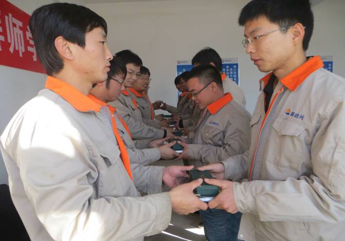 為盡快提高新員工的專業(yè)水平,保證裝置安全平穩(wěn)生產(chǎn),11月18日,新啟元運(yùn)行一部舉行了“導(dǎo)師帶徒,拜師學(xué)技”儀式。部門經(jīng)理、裝置技術(shù)員和七對(duì)師徒參加了此次儀式。