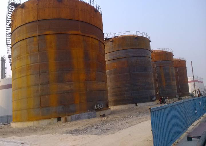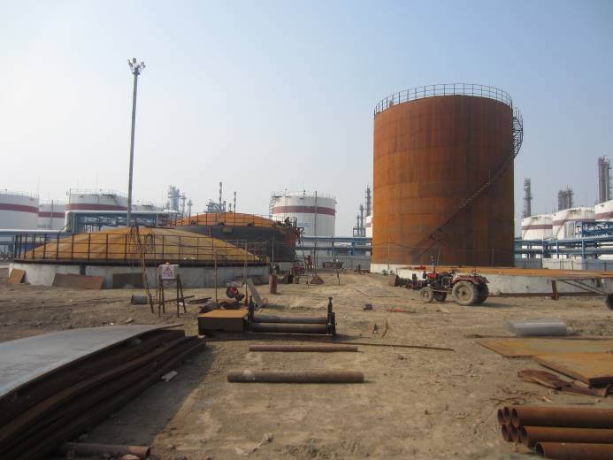 新建儲(chǔ)罐正在施工過程中 儲(chǔ)罐罐體已完工