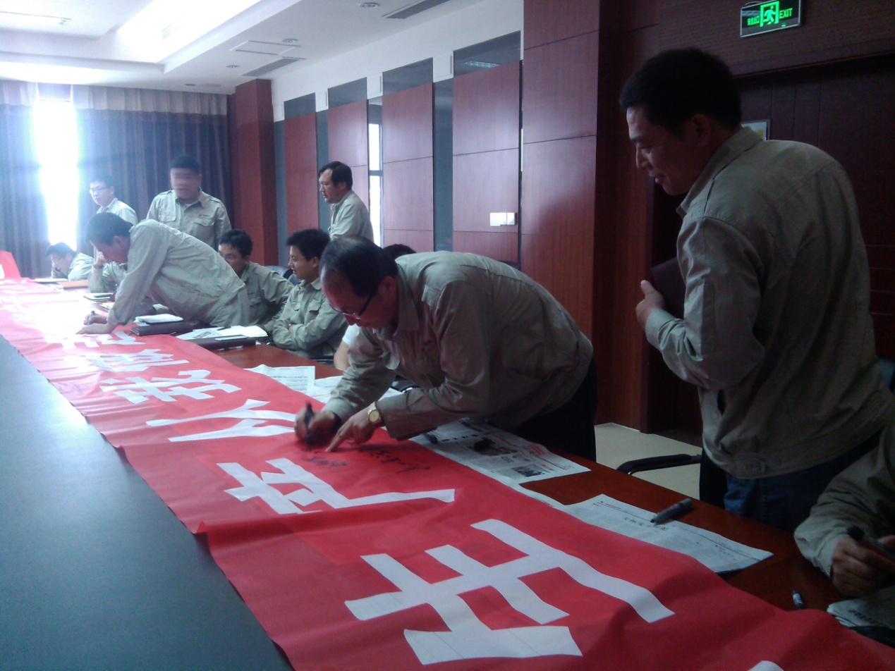 在安全生產(chǎn)月啟動(dòng)儀式結(jié)束后,與會(huì)人員把“我為安全說句話”的內(nèi)容和姓名簽在條幅上,表達(dá)出每個(gè)人對(duì)待安全生產(chǎn)的認(rèn)識(shí)。