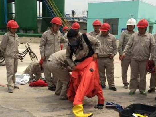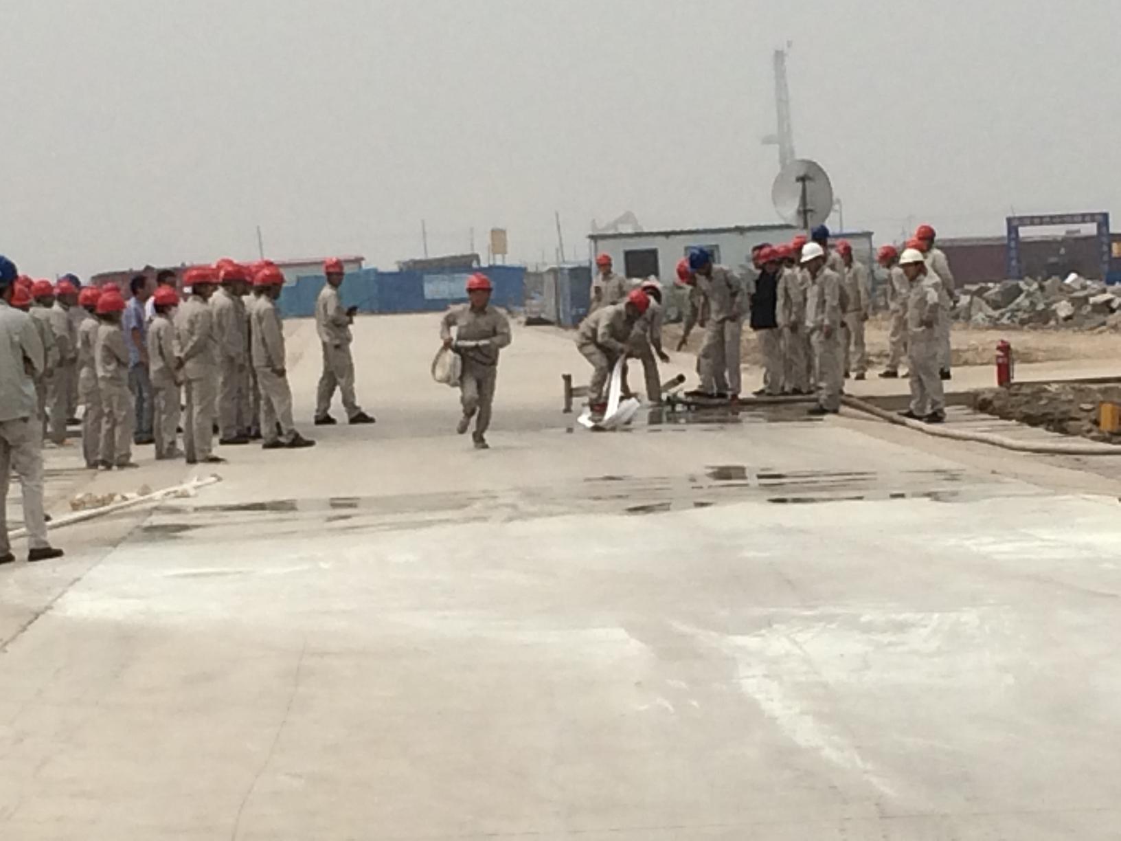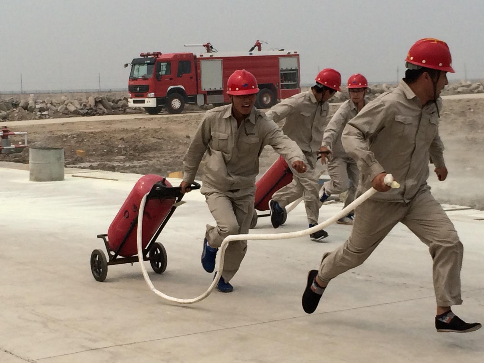 比賽共設(shè)三個項目:滅火器使用比賽、消防水帶使用比賽、空氣呼吸器及防化服穿戴比賽。健康安全環(huán)保部經(jīng)理孫長輝任總指揮,公司副總經(jīng)理劉立新現(xiàn)場指導(dǎo),中捷安監(jiān)局科長宋魁作為嘉賓也來到了現(xiàn)場。