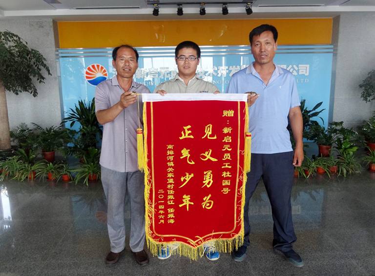 7月15日,在車禍中被救人員家屬來到新啟元公司,向見義勇為的員工杜國(guó)號(hào)贈(zèng)送錦旗表示感謝,這是他繼去年救助一名落水老人之后的又一善舉。