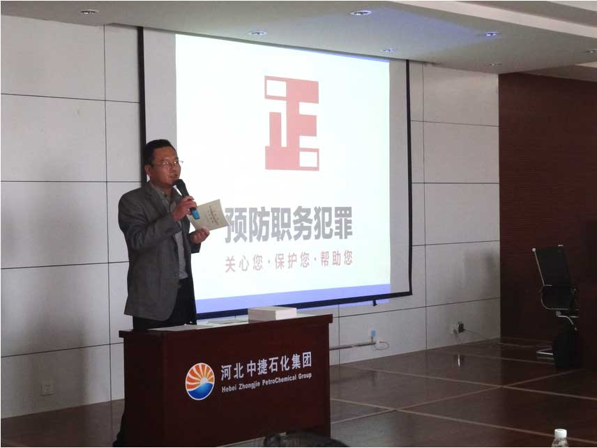 黃驊市檢察院唐科長受邀在會上為參會人員普及“反腐倡廉”知識。唐科長結(jié)合國家近兩年的反腐倡廉形勢,肅清貪污腐敗的典型案例,向參會人員講授了貪污腐敗行為對企業(yè)、家庭、個人帶來的嚴重后果,并詳細闡述了職務(wù)犯罪的種類及特點,對于概念模糊的貪污受賄行為做了法律上的明確界定與說明。最后,集團公司黨委書記劉國新為此次講座做了總結(jié)性講話,講話中,他要求各單位做好“反腐倡廉”工作,為個人負責(zé),為企業(yè)負責(zé)。