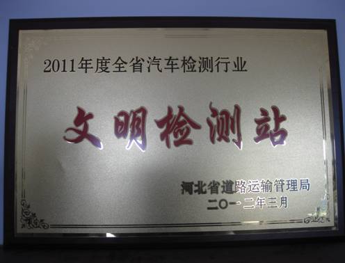 近日,臨港華誠必達(dá)汽車綜合性能檢測有限公司被河北省道路運輸管理局授予2011年全省汽車檢測行業(yè)“文明檢測站”榮譽(yù)稱號。