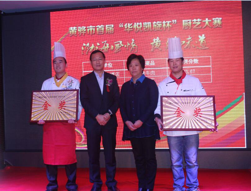 2015年10月31日上午,黃驊市首屆“華悅凱旋杯”廚藝大賽在華悅凱旋大酒店舉行。本次大賽由華悅凱旋大酒店和黃驊市食品藥品監(jiān)督局聯(lián)合主辦,旨在展示黃驊市博大精深的美食文化和文明向上的廚藝風(fēng)貌。黃驊市委常委、副市長(zhǎng)夏愛華,黃驊市政府食安辦主任耿兆良、河北中捷石化集團(tuán)總經(jīng)理于國(guó)臣等作為嘉賓出席本次比賽,來(lái)自河北省、天津市的八位業(yè)內(nèi)資深人士擔(dān)任評(píng)委,另設(shè)21名大眾評(píng)審。