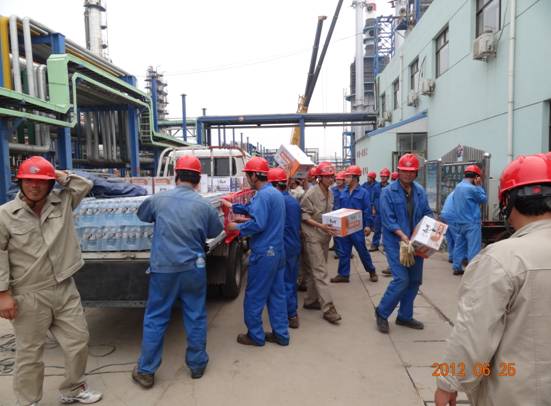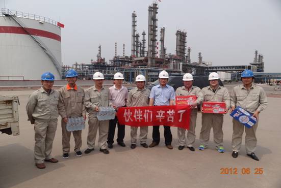 為表達集團公司對一線檢修員工的關愛,6月25日上午,總經(jīng)理于國臣等集團領導來到中海石油中捷石化有限公司(合營公司)和新啟元公司檢修現(xiàn)場進行了慰問,并為他們送去了礦泉水和方便面。希望大家在檢修期間繼續(xù)發(fā)揚“不怕吃苦、任勞任怨、無私奉獻”的精神,在確保安全的基礎上,能夠按時保質(zhì)保量的完成檢修任務。