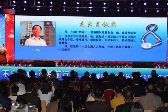 2016年10月15日晚,中捷友誼農(nóng)場建場60周年紀念表彰大會在青少年文化中心隆重舉行。會上,中捷產(chǎn)業(yè)園區(qū)黨委書記、管委會主任、中捷斯友誼農(nóng)場場長呂振華宣讀了《關(guān)于表彰建場60周年獲獎人物的決定》,一共有38人受到表彰。中捷石化集團董事長王振華榮獲“杰出貢獻者”稱號并接受表彰。