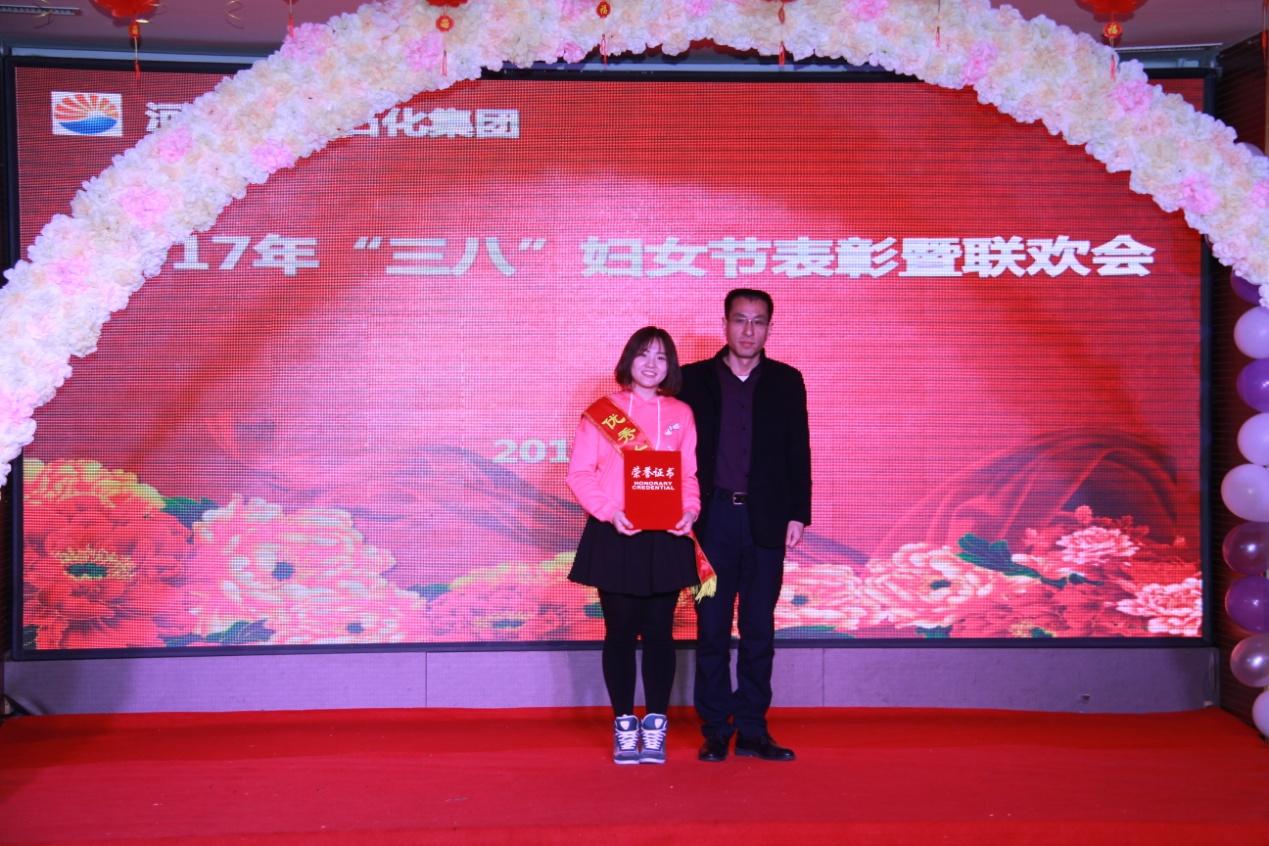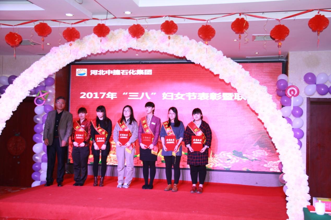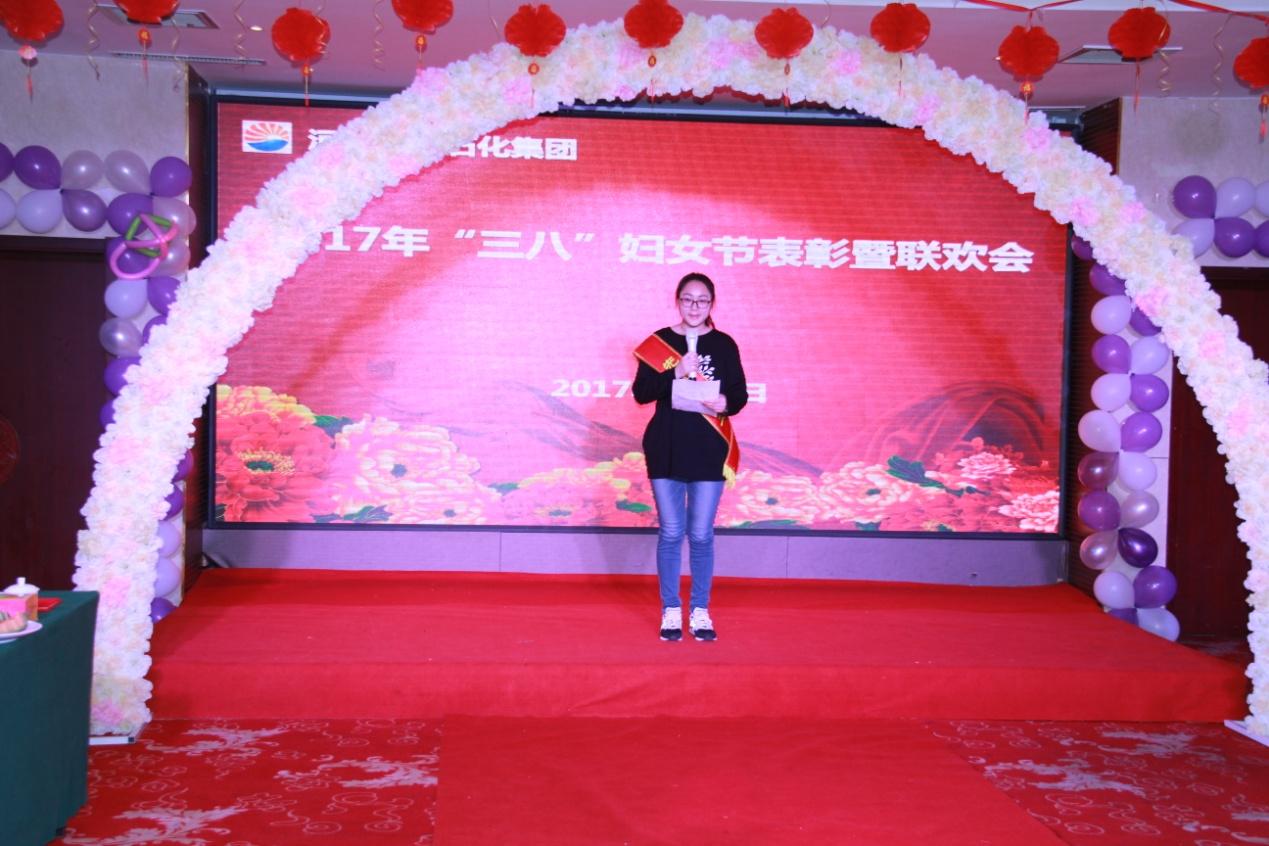 集團(tuán)工會主席趙愛華宣讀了河北中捷石化集團(tuán)2017年“三八”婦女節(jié)“先進(jìn)女職工”、“ 道德模范標(biāo)兵”、“ 優(yōu)秀女工組長”表彰決定,集團(tuán)公司黨委書記、副總經(jīng)理劉國新,工會主席趙愛華,紀(jì)委書記朱振江和新啟元公司工會主席劉立新為獲得表彰的17名先進(jìn)女工進(jìn)行了頒獎。新啟元公司朱雪梅作為先進(jìn)代表進(jìn)行了獲獎發(fā)言。
