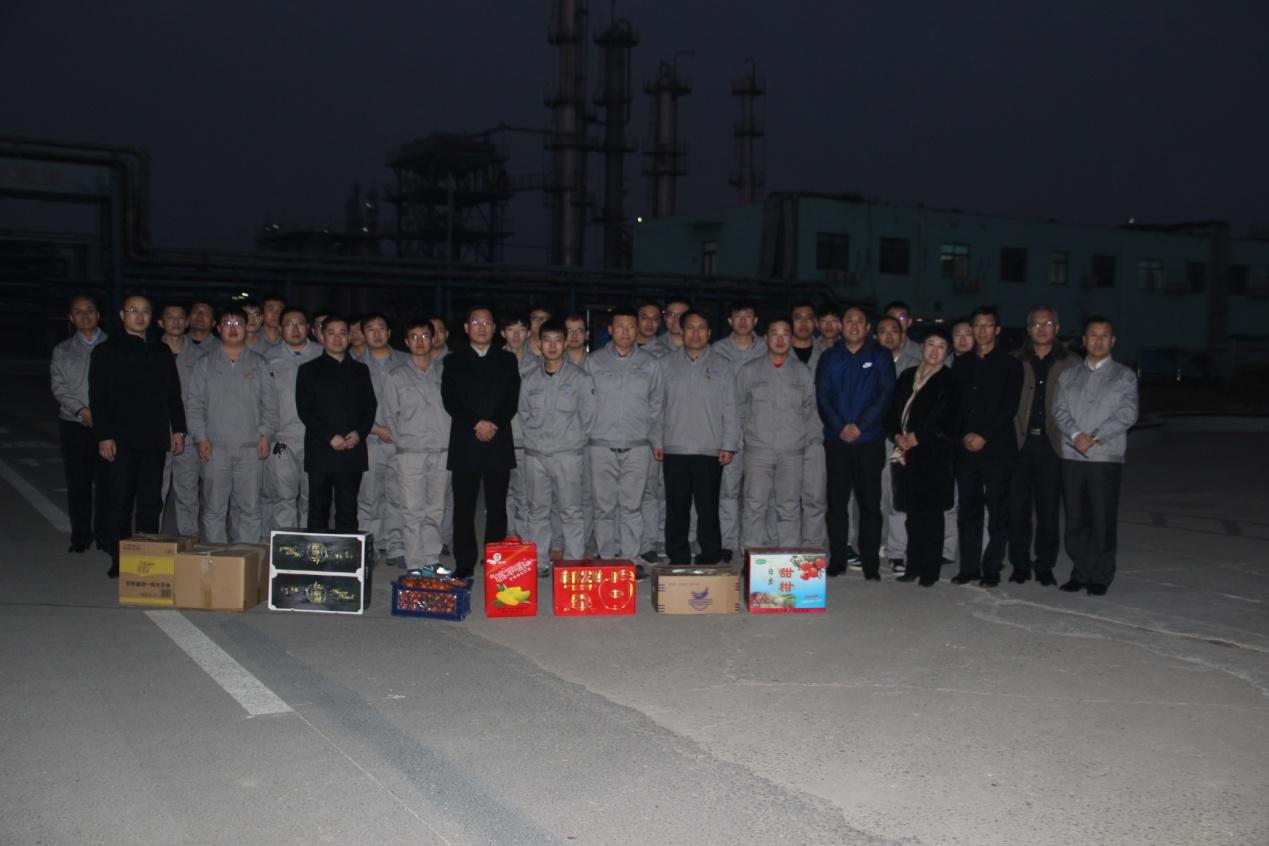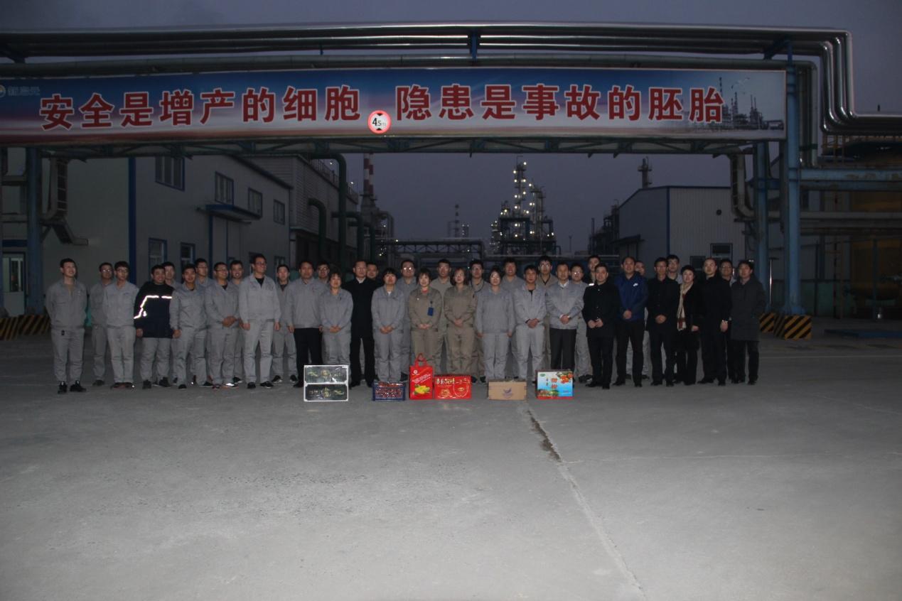 2019年2月4日,正值農(nóng)歷臘月三十,河北中捷石化集團(tuán)有限公司領(lǐng)導(dǎo)班子在集團(tuán)黨委書記于國(guó)臣、總經(jīng)理喬樹華的帶領(lǐng)下,先后赴黃驊華悅凱旋大酒店、滄州臨港華辰石油產(chǎn)品有限公司第三加油加氣站、河北捷馨建材責(zé)任有限公司地?zé)嵴?、河北華鑫洺源石油儲(chǔ)運(yùn)有限公司、河北華騰化工設(shè)備安裝工程有限公司、河北新欣園能源股份有限公司及河北新啟元能源技術(shù)開(kāi)發(fā)股份有限公司,走訪慰問(wèn)了除夕夜仍堅(jiān)守在工作崗位無(wú)私奉獻(xiàn)的石化伙伴們,為大家送去慰問(wèn)品,并致以誠(chéng)摯的問(wèn)候和美好的祝福,感謝他們?cè)谛麓杭压?jié)的付出和努力,同時(shí)祝愿全體員工及其家人身體健康,萬(wàn)事如意,春節(jié)快樂(lè),闔家幸福。