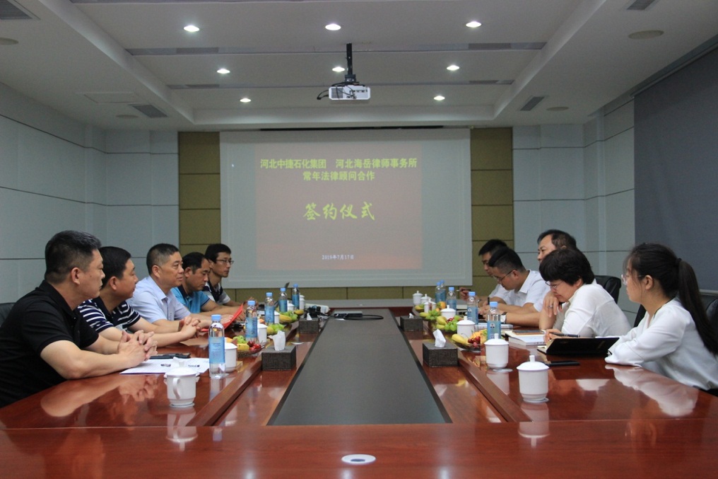 喬總指出,法律顧問(wèn)貫穿于企業(yè)運(yùn)行的各個(gè)領(lǐng)域,有著規(guī)范建設(shè)、防范風(fēng)險(xiǎn)的重要作用,為企業(yè)的經(jīng)營(yíng)管理進(jìn)行事前參謀、事中監(jiān)控、事后補(bǔ)救的工作,以實(shí)現(xiàn)企業(yè)價(jià)值的最大化。雙方既是老朋友更是新伙伴,雖然常年法律顧問(wèn)合作今年是第一年,但從業(yè)務(wù)上,雙方已經(jīng)有過(guò)很多接觸與合作,彼此有著深刻、良好的印象。河北海岳律師事務(wù)所具有深厚的法學(xué)理論功底、精湛的業(yè)務(wù)技能和豐富的執(zhí)業(yè)經(jīng)驗(yàn),以及配合默契的團(tuán)隊(duì)作戰(zhàn)精神,在為社會(huì)各界提供優(yōu)質(zhì)法律服務(wù)中樹立了良好的口碑。同時(shí),河北中捷石化集團(tuán)作為渤海新區(qū)經(jīng)濟(jì)發(fā)展中的一顆明星,需要專業(yè)化、高素質(zhì)的法律顧問(wèn),以推動(dòng)企業(yè)實(shí)現(xiàn)“持續(xù)、穩(wěn)定、創(chuàng)新、發(fā)展”,雙方的合作也必將實(shí)現(xiàn)強(qiáng)強(qiáng)聯(lián)合,互助共贏。