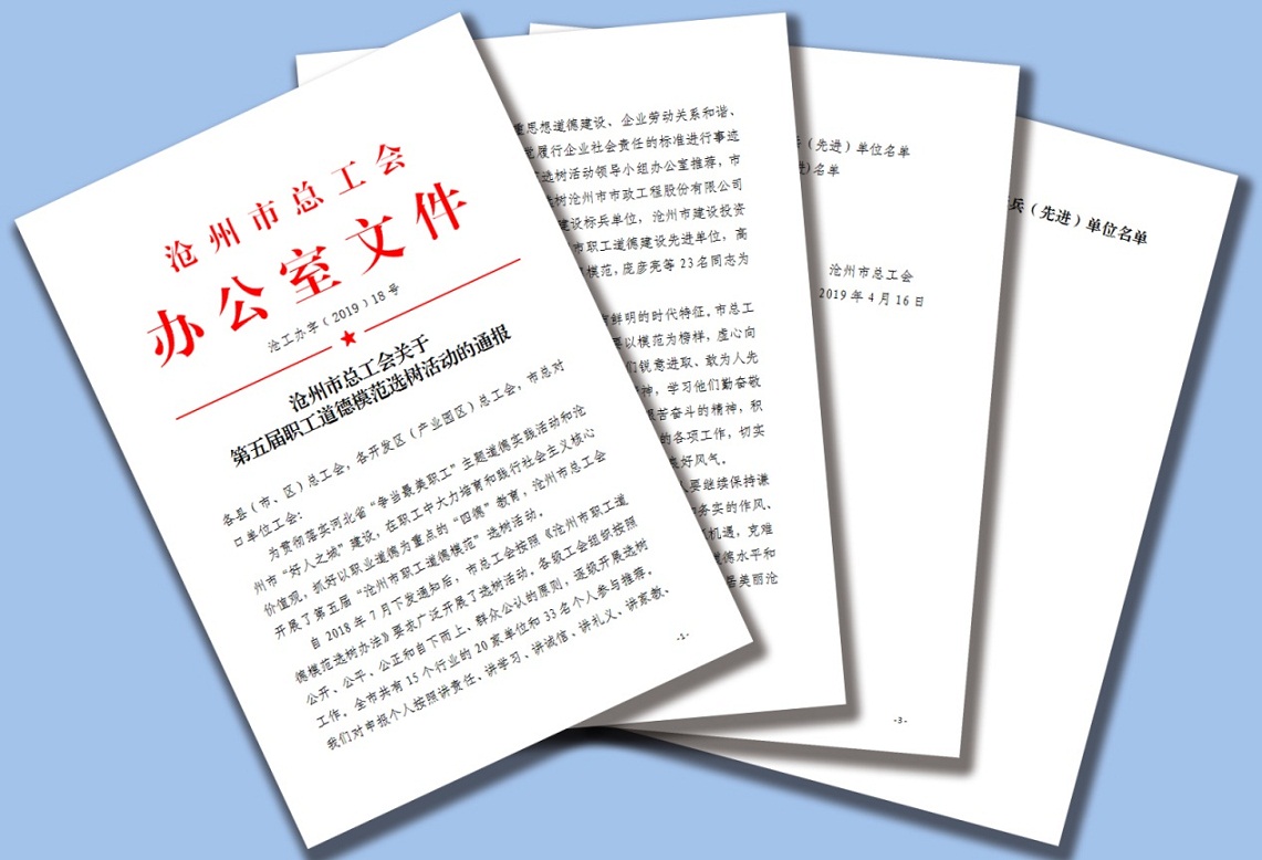 近日,中捷產(chǎn)業(yè)園區(qū)總工會(huì)為新啟元公司頒發(fā)了由滄州市總工會(huì)授予的“滄州市第五屆職工道德建設(shè)先進(jìn)單位”榮譽(yù)稱(chēng)號(hào),這是新啟元公司繼榮獲“厚德企業(yè)”、“先進(jìn)職工之家”、“模范職工之家”后的又一殊榮。