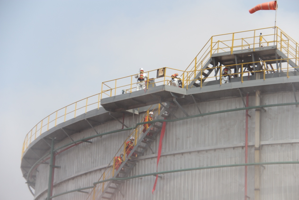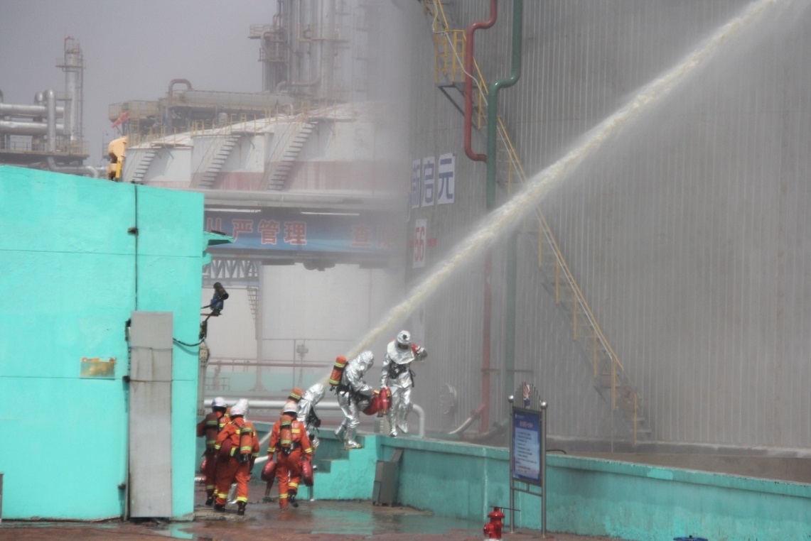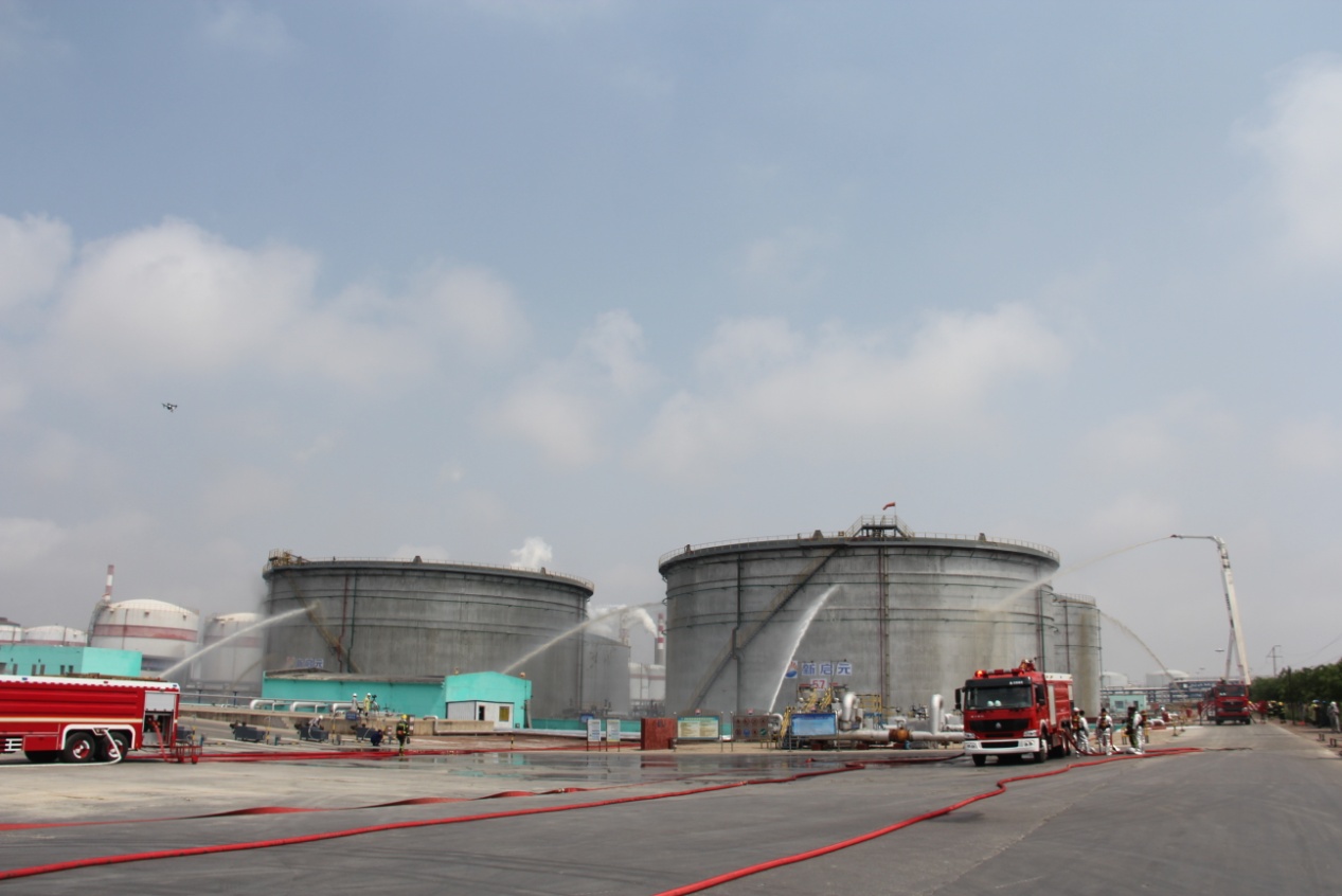 上午10:00,現(xiàn)場總指揮拉響警報后,演練準(zhǔn)時開始。情景模擬儲罐因雷擊出現(xiàn)密封圈點式火災(zāi),并引發(fā)泄漏著火事故,因企業(yè)自身應(yīng)急救援力量不能及時控制火勢,情況緊急擴大響應(yīng),中捷產(chǎn)業(yè)園區(qū)啟動應(yīng)急救援預(yù)案,調(diào)集政府消防隊、周邊企業(yè)消防隊、120救護(hù)車進(jìn)行緊急救援,各救援隊伍立即投入到救援行動中,最終將傷員救出,火災(zāi)得到控制。通過此次演練,檢驗了園區(qū)危險化學(xué)品應(yīng)急預(yù)案的科學(xué)性和實用性,進(jìn)一步提高了企業(yè)面對突發(fā)事件的應(yīng)急處理能力和協(xié)調(diào)作戰(zhàn)能力,以及?;坊馂?zāi)事故應(yīng)急管理救援水平,進(jìn)一步提升了應(yīng)急救援體系和應(yīng)急預(yù)案的可行性、緊密性、可靠性。