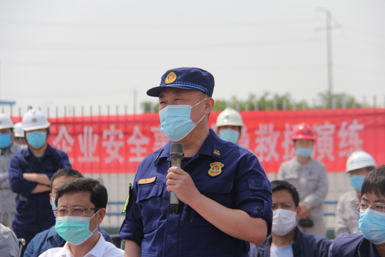 王偉支隊長對此次演練進(jìn)行點評。他指出:此次應(yīng)急演練非常具有針對性,各參演單位精心組織、周密安排、密切配合,達(dá)到了預(yù)期效果。此次演練是深入貫徹落實習(xí)近平總書記對安全生產(chǎn)工作的重要指示精神,促進(jìn)了政府消防隊伍與企業(yè)消防隊伍之間協(xié)同作戰(zhàn)能力及水平的大幅提升。今后,我們要把功夫下在平時,提升救援隊伍的精神面貌,強化應(yīng)急救援專業(yè)訓(xùn)練,針對突發(fā)事件應(yīng)急救援工作面臨的新形勢、新情況,崗位練兵和聯(lián)合實戰(zhàn)要相結(jié)合,做到磨練隊伍、總結(jié)經(jīng)驗、提升能力,一旦發(fā)生事故,確保能夠快速響應(yīng),科學(xué)救援,將人員傷亡和財產(chǎn)損失降到最小。同時針對演練中暴露出的問題要認(rèn)真總結(jié),加以改進(jìn),確保演練效果真正落到實處。
