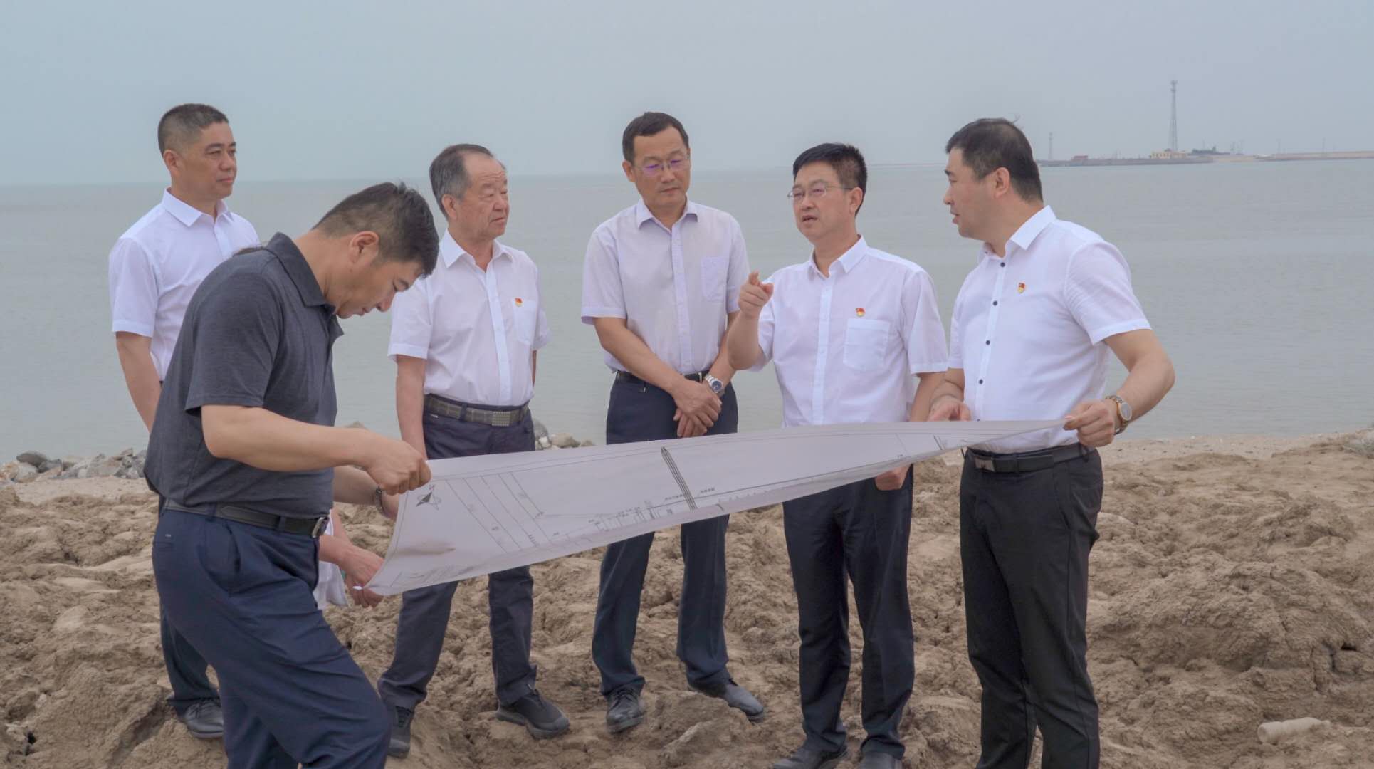華鑫洺源公司訊(通訊員 張路)值此中捷石化集團建廠四十五周之際,近日,集團董事長王振華、黨委書記于國臣、總經理喬樹華帶領集團公司各級領導,蒞臨陸源公司散雜貨碼頭項目現(xiàn)場進行調研指導工作,并拍攝了慶祝中捷石化集團建廠四十五周年的紀念視頻。