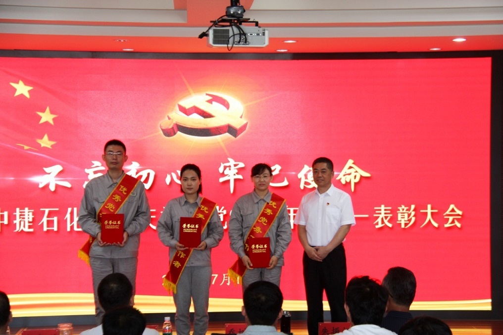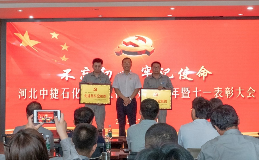 集團(tuán)公司訊(通訊員 朱鑫林)為熱烈慶祝和紀(jì)念中國共產(chǎn)黨成立99周年,表彰一批在黨建和集團(tuán)事業(yè)發(fā)展建設(shè)中涌現(xiàn)出來的先進(jìn)基層黨組織、優(yōu)秀黨務(wù)工作者、優(yōu)秀共產(chǎn)黨員,勉勵廣大黨員不忘初心,牢記使命,繼承和發(fā)揚(yáng)黨的優(yōu)良傳統(tǒng),7月1日,河北中捷石化集團(tuán)黨委組織召開了慶祝建黨99周年暨“七一”表彰大會。原中捷企業(yè)黨工委書記沈?qū)W明同志,集團(tuán)黨委書記于國臣同志,集團(tuán)總經(jīng)理喬樹華同志,以及各所屬黨支部書記,各所屬單位董事長、總經(jīng)理,2019-2020年度先進(jìn)基層黨組織代表、優(yōu)秀黨務(wù)工作者、優(yōu)秀共產(chǎn)黨員,各支部黨員代表共計(jì)70余人參加了此次活動。