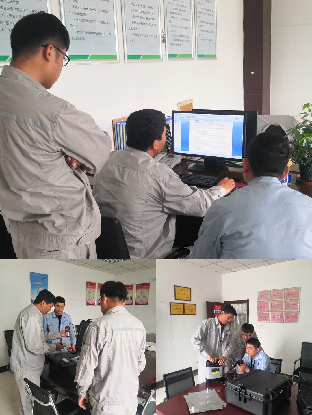 HSE工程師田永振解讀了公司下發(fā)的LDAR檢測(cè)管理制度,并對(duì)檢測(cè)儀器的配件組成、使用方法進(jìn)行了細(xì)致的講解。隨后帶領(lǐng)各裝置工程師到污水裝置進(jìn)行自檢教學(xué),首先將檢測(cè)儀器在可能泄漏的設(shè)備表面確定檢測(cè)點(diǎn)位,并將采樣探頭對(duì)準(zhǔn)檢測(cè)點(diǎn)位,將檢測(cè)儀置于度數(shù)最高值處并在儀器響應(yīng)時(shí)間內(nèi)至少讀數(shù)兩次,記錄最大值為此處檢測(cè)得到的泄漏值。此次檢測(cè)共查出6項(xiàng)泄漏點(diǎn),并記錄在LDAR自行檢測(cè)臺(tái)賬,其中5項(xiàng)均已整改完成,1處掛牌。隨后各裝置工程師按照公司及部門(mén)的要求對(duì)裝置區(qū)易泄漏區(qū)開(kāi)始進(jìn)行自檢,將泄漏檢測(cè)結(jié)果列入臺(tái)賬整理,周期為7天。
