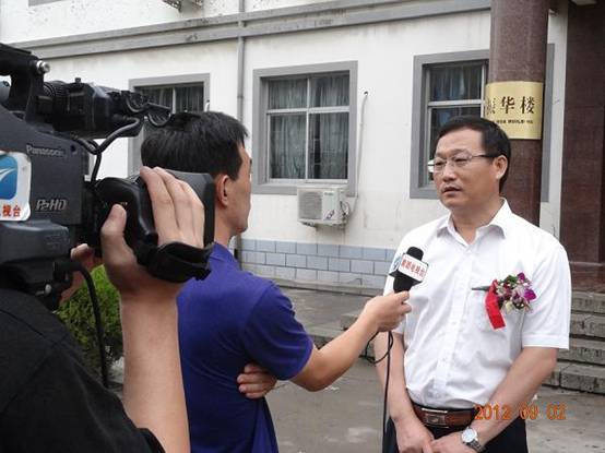 慶典結(jié)束后,黃驊中學為校址內(nèi)一所命名為“振華樓”的教學樓進行了揭牌儀式,揭牌儀式結(jié)束現(xiàn)場,于總接受了黃驊電視臺記者的采訪。