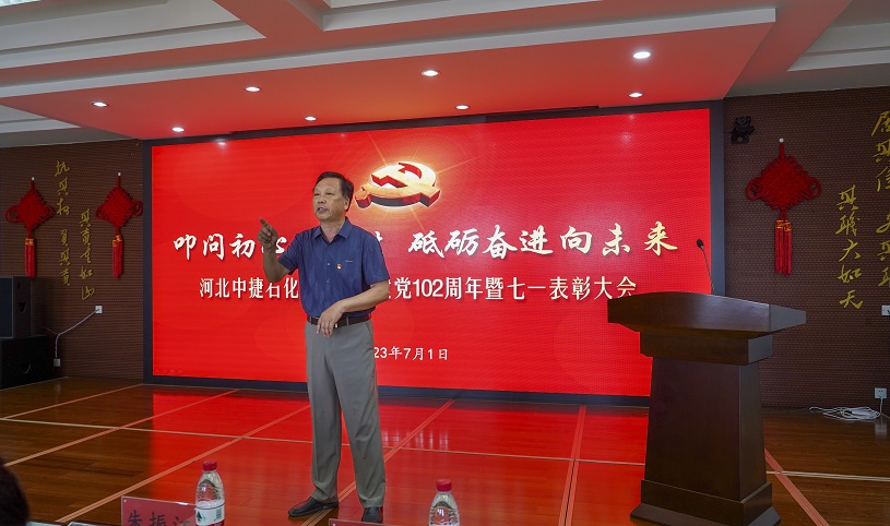 集團公司訊 為隆重紀念中國共產(chǎn)黨成立102周年,深入開展學(xué)習(xí)貫徹習(xí)近平新時代中國特色社會主義思想主題教育,激勵各基層黨組織和黨員充分發(fā)揮戰(zhàn)斗堡壘作用和先鋒模范作用,同時為弘揚先進典型,彰顯榜樣力量,不斷增強基層黨組織的創(chuàng)造力、凝聚力、戰(zhàn)斗力,7月1日,河北中捷石化集團黨委組織召開了慶祝建黨102周年暨“七一”表彰大會。中捷產(chǎn)業(yè)園區(qū)組織人事部副部長、非公有制經(jīng)濟和社會組織黨委書記邵澤慶同志,原中捷企業(yè)黨工委書記沈?qū)W明同志,集團黨委副書記、總經(jīng)理喬樹華同志,集團黨委副書記、紀委書記朱振江同志以及各所屬黨(總)支部書記,各支部黨員代表共計60余人參加了此次活動。