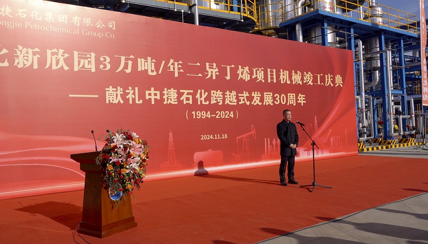 集團黨委書記于國臣為慶典活動作講話。于國臣指出,今天我們在這里舉行3萬噸/年二異丁烯項目機械竣工慶典,作為獻禮中捷石化跨越式發(fā)展30周年的重要活動,對于集團公司來說有著特殊的重要意義。同時代表集團董事長向來到竣工慶典現(xiàn)場的伙伴們,向參建方項目代表及工人代表們表示熱烈的歡迎,向長期以來關(guān)心、支持、幫助中捷石化事業(yè)發(fā)展的各級領(lǐng)導和各界人士表示誠摯的感謝。于國臣在講話中回顧了中捷石化跨越式發(fā)展30周年的歷程并為大家介紹了下屬單位新欣園的公司情況。