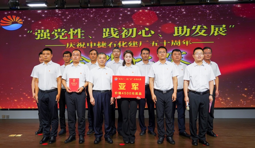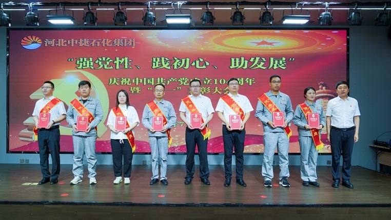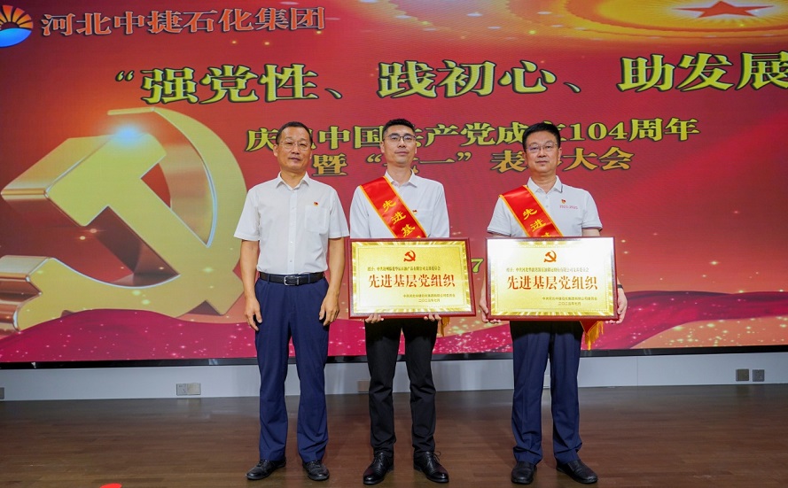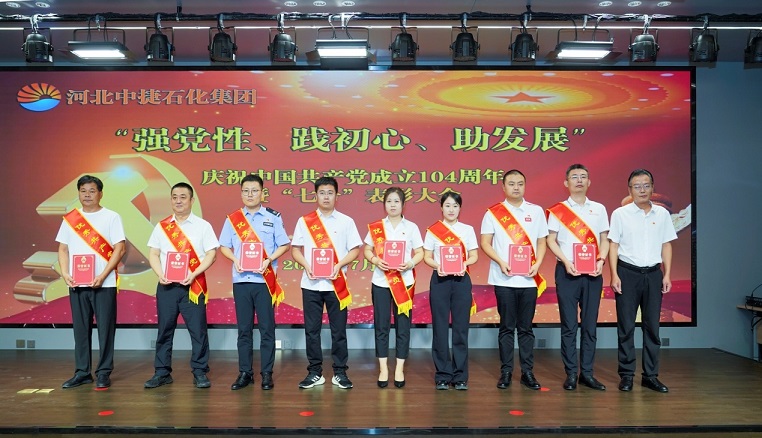 集團(tuán)公司訊 為慶祝中國共產(chǎn)黨成立104周年,進(jìn)一步激勵各基層黨組織和黨員充分發(fā)揮戰(zhàn)斗堡壘作用和先鋒模范作用,弘揚(yáng)先進(jìn)典型,彰顯榜樣力量,不斷增強(qiáng)基層黨組織的創(chuàng)造力、凝聚力、戰(zhàn)斗力,同時結(jié)合慶祝建廠50周年系列活動,為激發(fā)廣大黨員職工的愛黨愛國熱情,展現(xiàn)中捷石化人“認(rèn)真、真實(shí)、實(shí)在”的企業(yè)精神,凝聚力量團(tuán)結(jié)一心向前行,7月1日,河北中捷石化集團(tuán)黨委在偉業(yè)大廈二樓多功能廳組織召開了慶祝中國共產(chǎn)黨成立104周年暨“七一”表彰大會和合唱比賽。集團(tuán)董事長王振華同志,集團(tuán)黨委書記于國臣同志,集團(tuán)黨委副書記、總經(jīng)理喬樹華同志,集團(tuán)黨委副書記、紀(jì)委書記朱振江同志以及各黨支部書記、各所屬單位總經(jīng)理、2024-2025年度先進(jìn)基層黨組織代表、優(yōu)秀黨務(wù)工作者、優(yōu)秀共產(chǎn)黨員、合唱比賽人員共計120余人參加了此次活動。