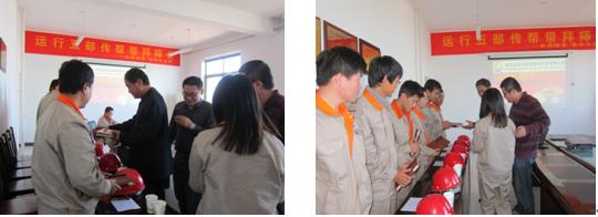 2012年10月17日,對(duì)于新啟元運(yùn)行五部來(lái)講,是一個(gè)可喜可賀的日子。在這陽(yáng)光明媚的金秋時(shí)節(jié),運(yùn)行五部的新老員工們?cè)诠靖笨偨?jīng)理劉立新、綜合管理部經(jīng)理李樹(shù)祥、技術(shù)工程部經(jīng)理王政的見(jiàn)證下,舉行了一次隆重的拜師儀式。此次拜師會(huì)的主題是:“一杯拜師茶,帶動(dòng)你我他!”