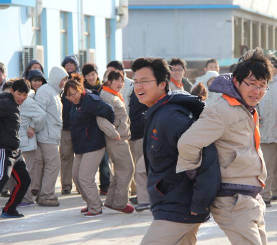 上午9時,在凜冽的寒風(fēng)中,伴隨著一聲號響,大賽拉開帷幕。心心相?。ū硦A球)、三人四足等既考驗團(tuán)隊協(xié)作能力又極富樂趣的項目相繼進(jìn)行。員工們在歡聲笑語中感受著新春的喜悅,在一次次跌倒又爬起的堅持中點(diǎn)燃永不服輸?shù)亩分?,在互動交流中增進(jìn)了配合的默契……