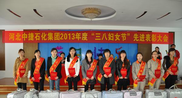 為了紀念“三八”國際勞動婦女節(jié),表彰在過去一年中表現(xiàn)突出的先進女工,中捷石化集團組織各所屬公司于2013年3月8日在華潤瀝青會議室舉辦2013年度“三八婦女節(jié)”先進表彰大會,出席本次會議的有中捷產(chǎn)業(yè)園區(qū)工會主席姜淑芹、中捷產(chǎn)業(yè)園區(qū)計生局局長楊小、中捷產(chǎn)業(yè)園區(qū)工會財務部部長朱瑞玲、集團常務副總經(jīng)理劉國新、集團副總經(jīng)理張鵬、集團總工程師耿萍。