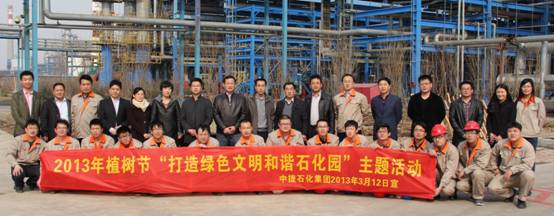 中捷石化集團2013年植樹節(jié)“打造綠色文明和諧石化園”主題活動于3月15日下午兩點半在新啟元廠區(qū)隆重舉行,集團總經(jīng)理于國臣帶領(lǐng)集團公司及各子公司領(lǐng)導班子共30余人參加了此次活動。