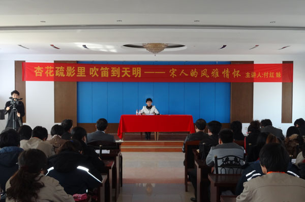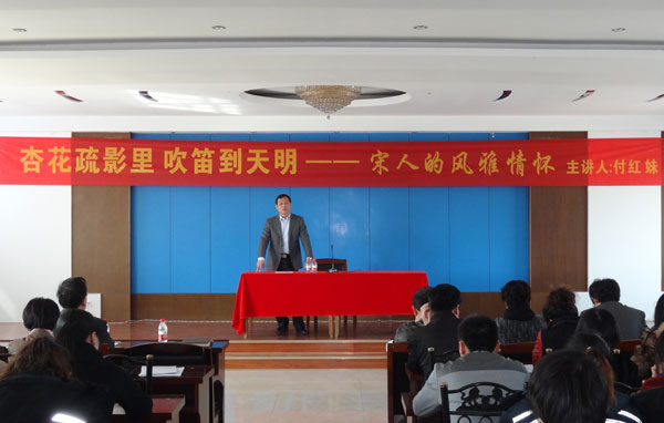 3月22日,河北中捷石化集團(tuán)和黃驊報社聯(lián)合舉辦以“杏花疏影里 吹笛到天明——宋人的風(fēng)雅情懷”為主題的講座。此次講座,公司邀請了滄州師范學(xué)院中文系教授、北京大學(xué)文學(xué)碩士付紅妹為主講,同時應(yīng)邀到場的還有渤海新區(qū)宣傳工作領(lǐng)導(dǎo)小組常務(wù)副組長、宣傳顧問劉桂茂,中捷產(chǎn)業(yè)園區(qū)組宣部部長田永斌,黃驊報社社長楊勇,黃驊報社副主編李東明,中捷石化集團(tuán)總經(jīng)理于國臣等公司領(lǐng)導(dǎo),以及集團(tuán)公司文化宣傳員和文學(xué)愛好者。